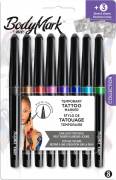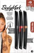 Para realizar exactamente el diseño que se desea, los marcadores BIC BodyMark están disponibles en versiones de punta de pincel y punta fina, lo que permite diseñar todo tipo de tatuajes: desde pequeños detalles (como henna, tatuajes minimalistas o realistas) hasta tatuajes grandes y coloridos (como tribales o deportivos).