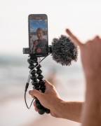 El Kit GorillaPod Creator incluye tres productos Joby esenciales. En el corazón del kit encontramos un accesorio imprescindible para cualquier vlogger, el GorillaPod 1K stand, que es mini trípode GorillaPod de patas flexibles, perfecto para cualquier situación de soporte de sobremesa o sostenido con la mano; también idóneo para instalarlo en una barra, banco, farola, rama, etc. gracias, como decimos, a sus patas flexibles. Se acompaña por la montura para teléfono GripTight Smart, que permite colocar el smartphone en formato horizontal (paisaje) o vertical (retrato). Y, finalmente, para lograr que el mensaje llegue con total claridad, incluye el micrófono direccional Wavo Mobile, con tecnología Rycote Lyre, para optimizar el sonido y aislar el ruido ambiente y del viento.